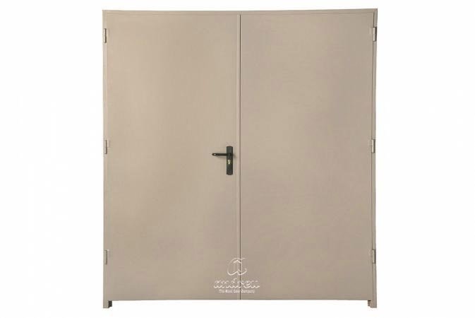 Hoja de 38mm de espesor, construida con dos planchas de acero galvanizado de 0.5mm de espesor. Disponible con marco esquinero CS4 o abrazamuros C70. El conjunto cuenta con 2 ó 3 bisagras de acero 2.5mm de espesor, en función de la dimensión de la puerta.