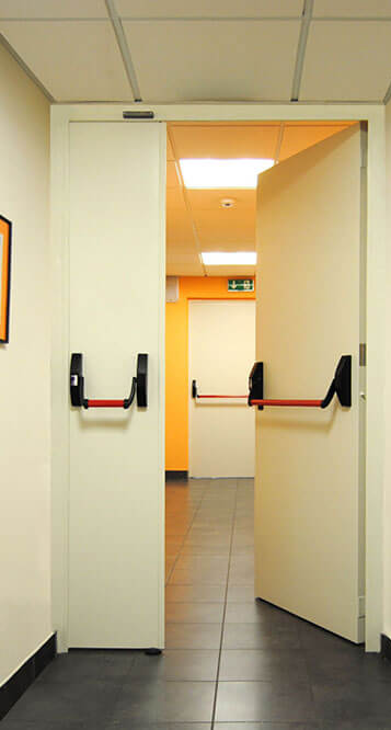 Son puertas con resistencia EI2 120 que se caracterizan por tener un mayor espesor de chapa, una serie de refuerzos internos adicionales en marco y hoja, 4 bisagras inoxidables por hoja, etc. Además, cuenta con elementos para su fijación.